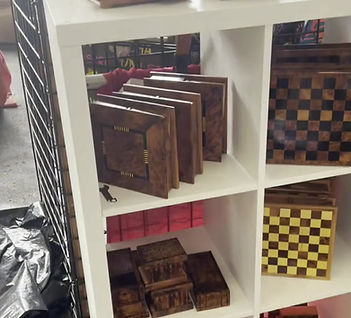 I offer a variety of intricately-carved cedar wood masterpieces, ranging from jewelry boxes to chess boards to charcuterie trays to one-of-a-kind tables and sculptures. Each piece is a testament to the artistry and craftsmanship that has been passed down through generations of Najib's family.